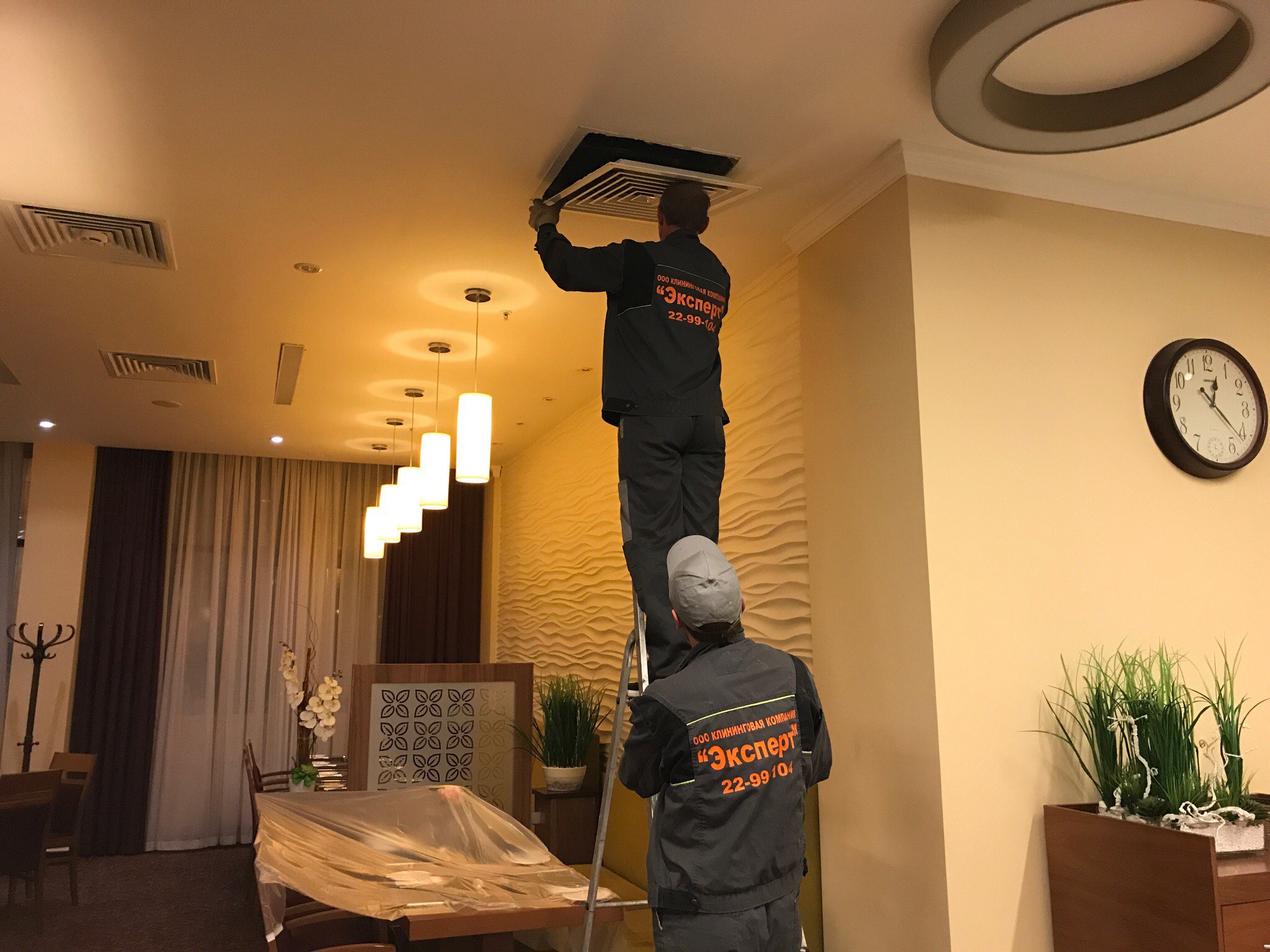 Очистка системы вентиляции и кондиционирования воздуха может быть произведена сухим или влажным способом — в зависимости от загрязняющего воздух агента (пыль, органические, неорганические вещества и др.).