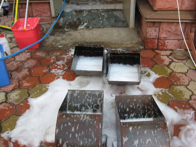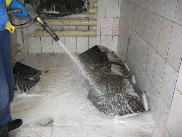Запрещается проводить очистку внутренней поверхности воздуховодов с применением воды и химических средств, состоящих из концентрированных кислотных и щелочных растворов. Допускается применять химические чистящие средства, воду и пар лишь в при очистке воздуховодов кухонных вытяжных систем с полной разборкой либо после предварительного проведения герметизации очищаемых воздуховодов.