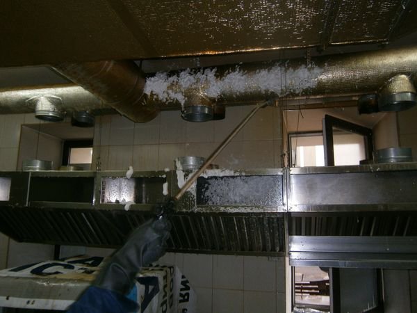- механическая очистка применяется в тех случаях, когда загрязнение сформировано не только скоплением пыли, но и жировыми отложениями. Как правило, такие работы выполняются на кухнях, где в вытяжку проникает большое количество копоти, которую ершиком, закрепленным на гибком валу, удалить не получается.