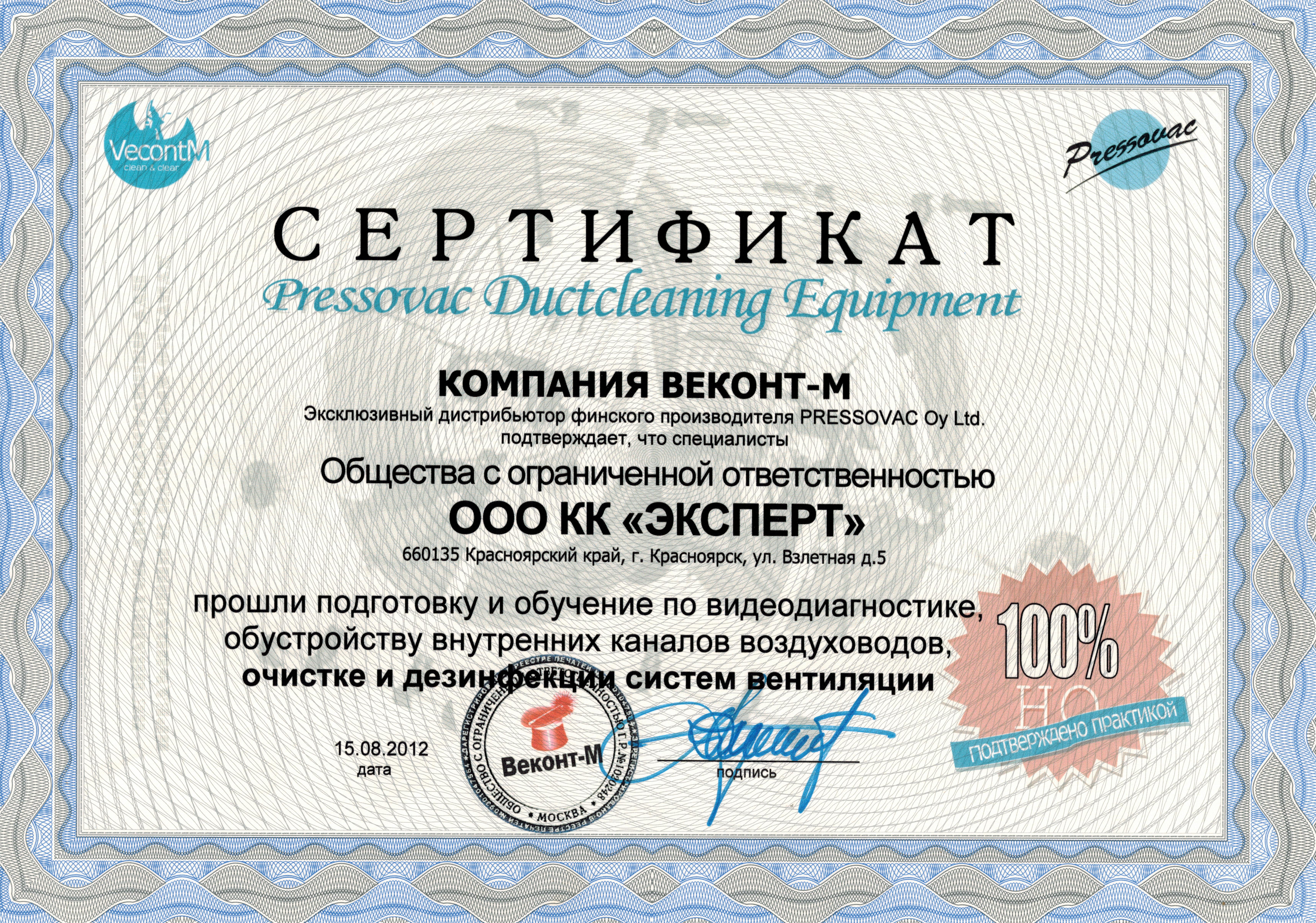 Деятельность по очистке и дезинфекции систем вентиляции и кондиционирования осуществляется при наличии санитарно-эпидемиологического заключения, выданного Роспотребнадзором, а также лицензии на дезинфекционную деятельность. Очистка и дезинфекция систем вентиляции и кондиционирования воздуха проводится специалистами, прошедшими соответствующее обучение и имеющими опыт работы в области проектирования, монтажа, наладки и облуживания систем вентиляции и кондиционирования. Кроме этого, все лица, занимающиеся дезинфекционной деятельностью, проходят профессиональною подготовку и аттестацию, включая вопросы безопасного осуществления работ, оказания первой доврачебной помощи при отравлении дезинфицирующими средствами.